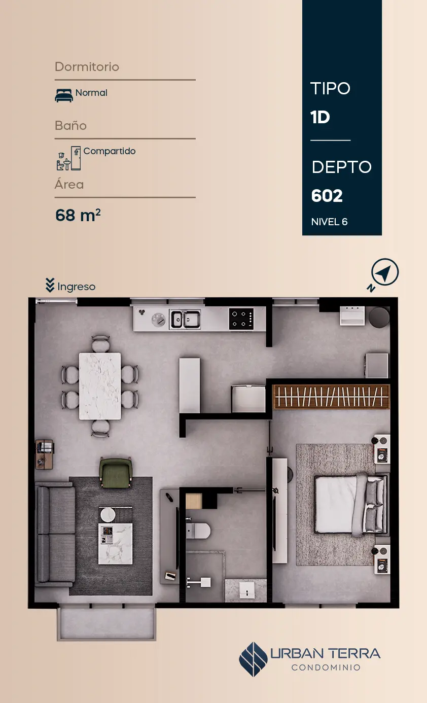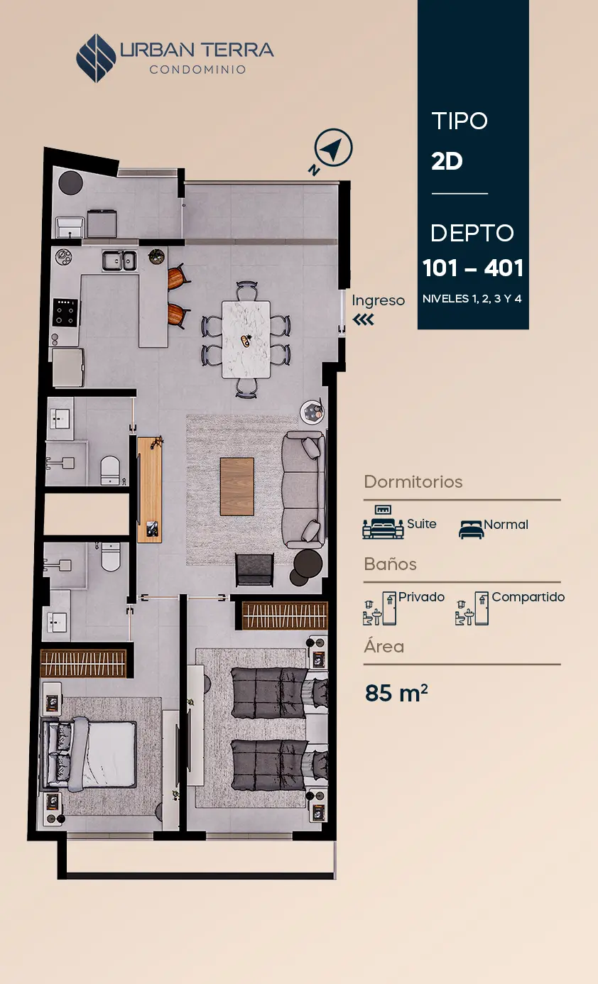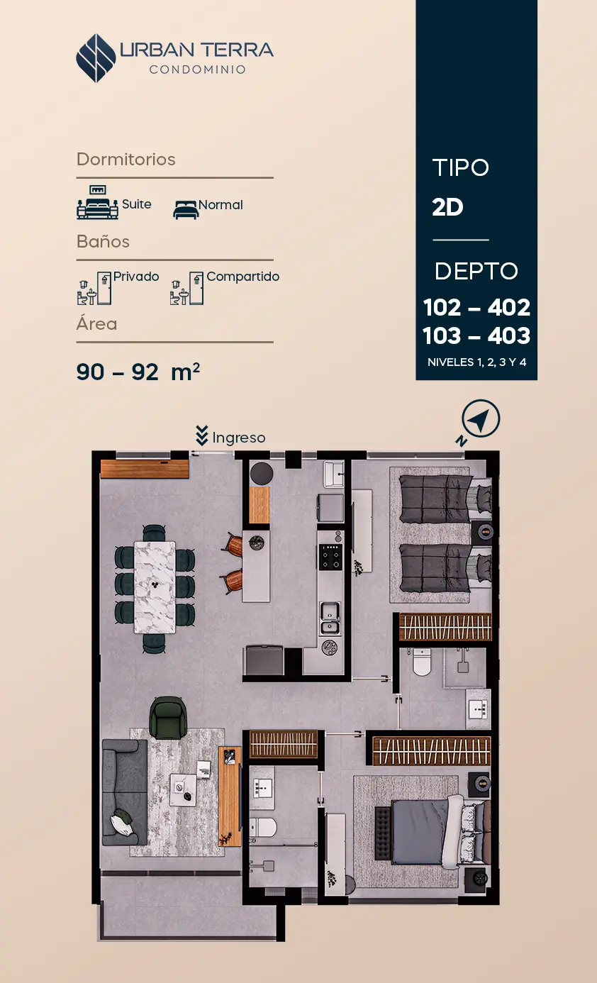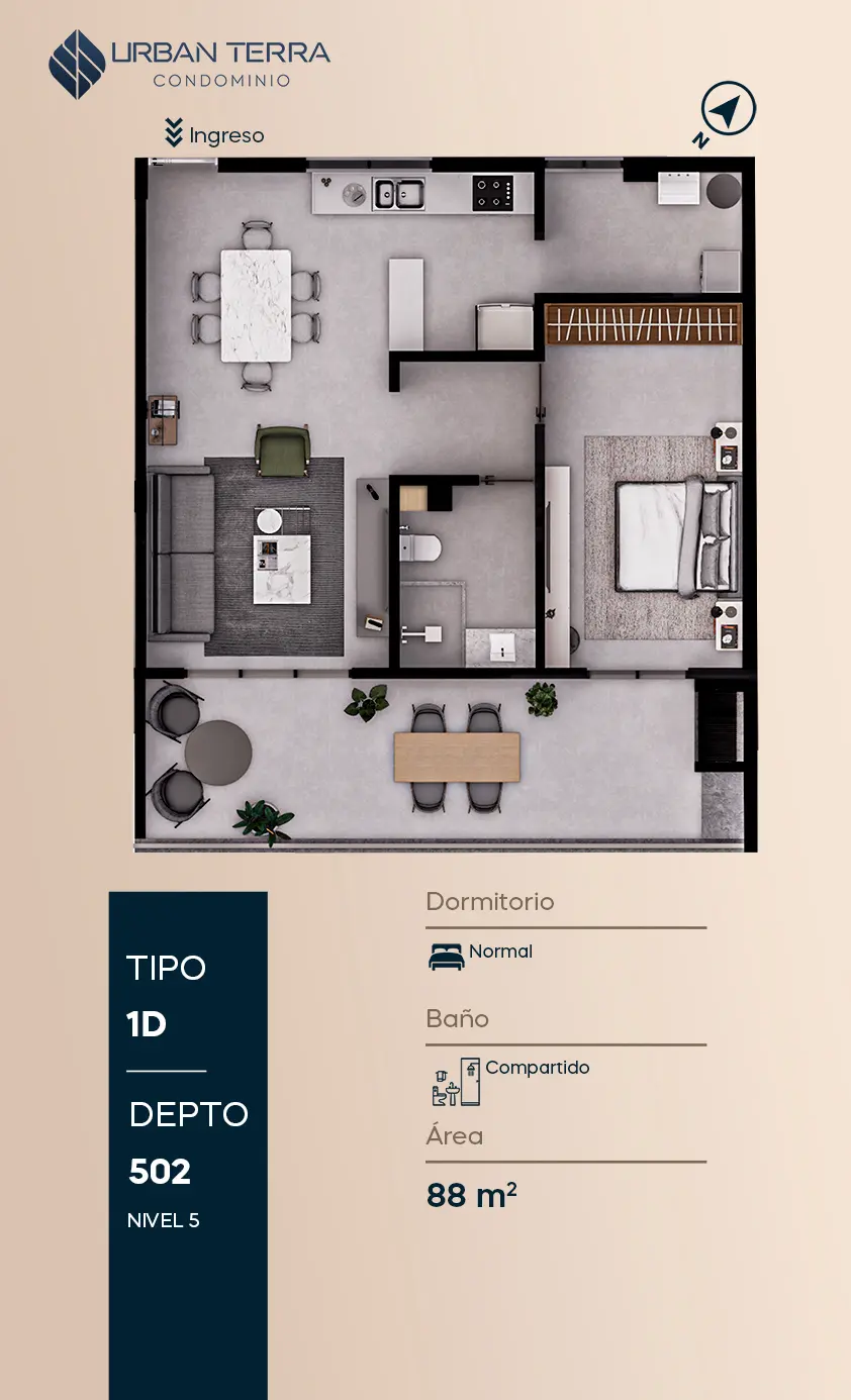 Este condominio está concebido para satisfacer las exigencias de quienes valoran tanto la comodidad de tener todo al alcance, como también quienes buscan oportunidades de inversión (alquiles AIRBNB)
